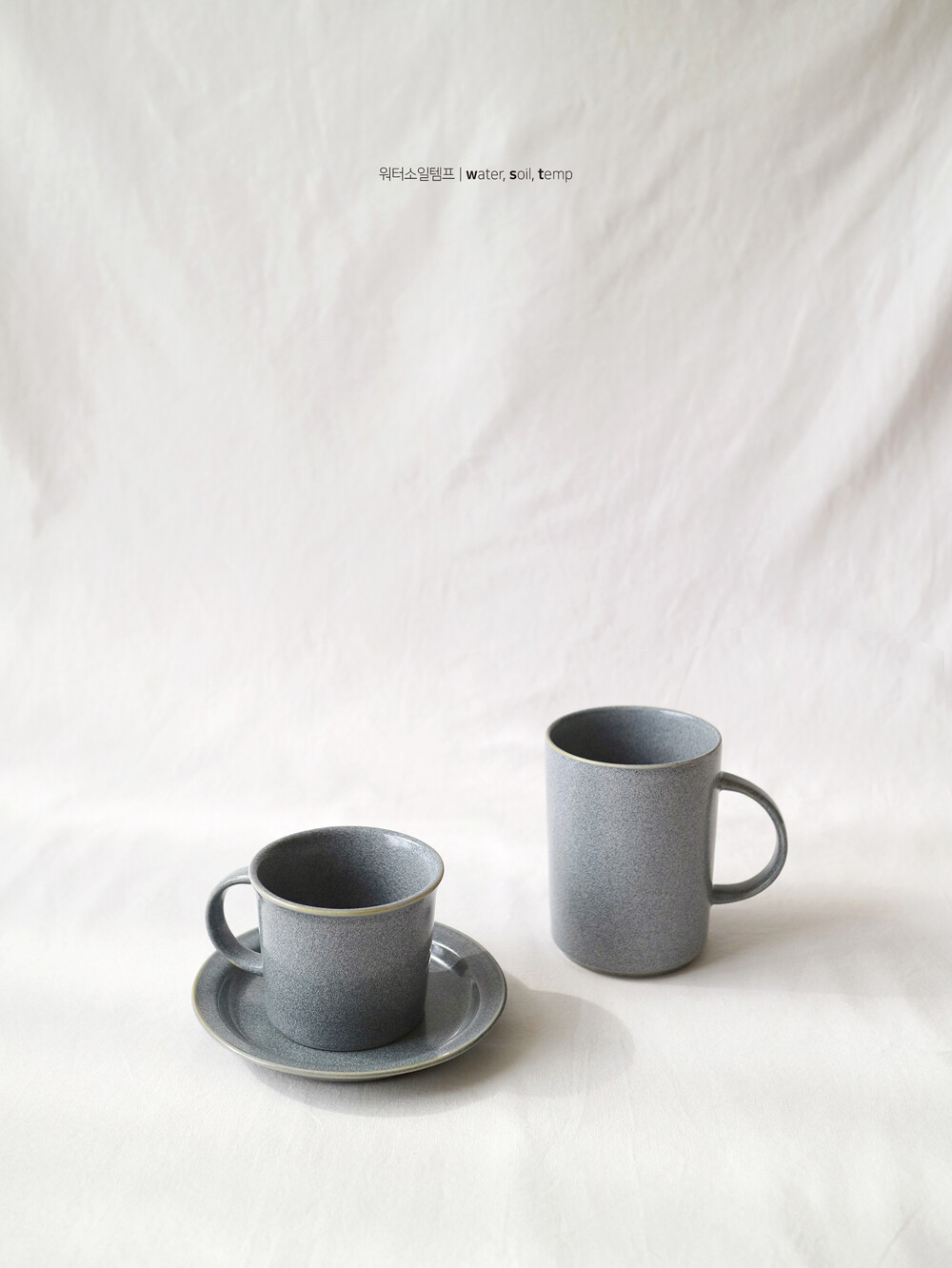 색다른 느낌보다는 워터소일템프가 추구하는 기본+심플한 디자인으로 보여드리는것이 맞다 판단하여 제작된 커피잔 & 머그입니다.