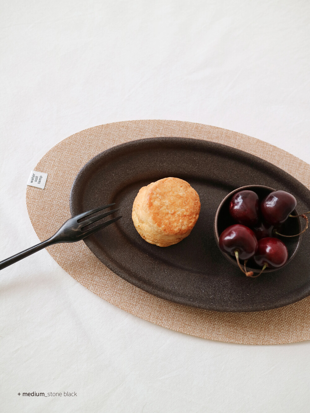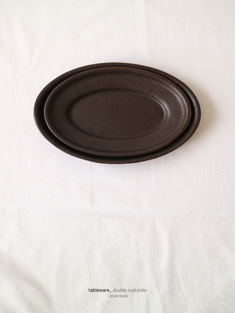 [SALE] 더블 오벌 플레이트_스톤 블랙S