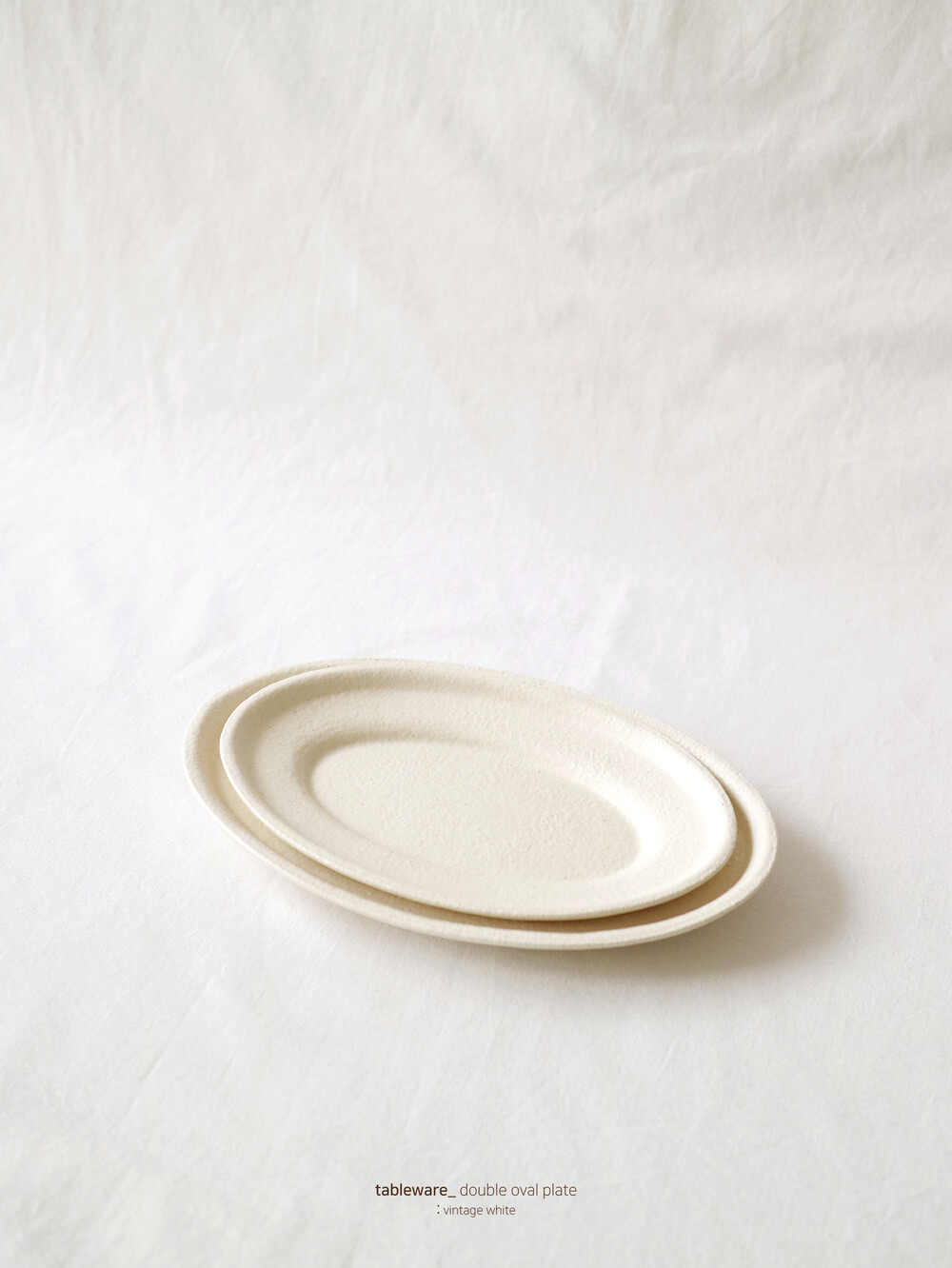 [SALE] 더블 오벌 플레이트_빈티지 화이트 (2size)