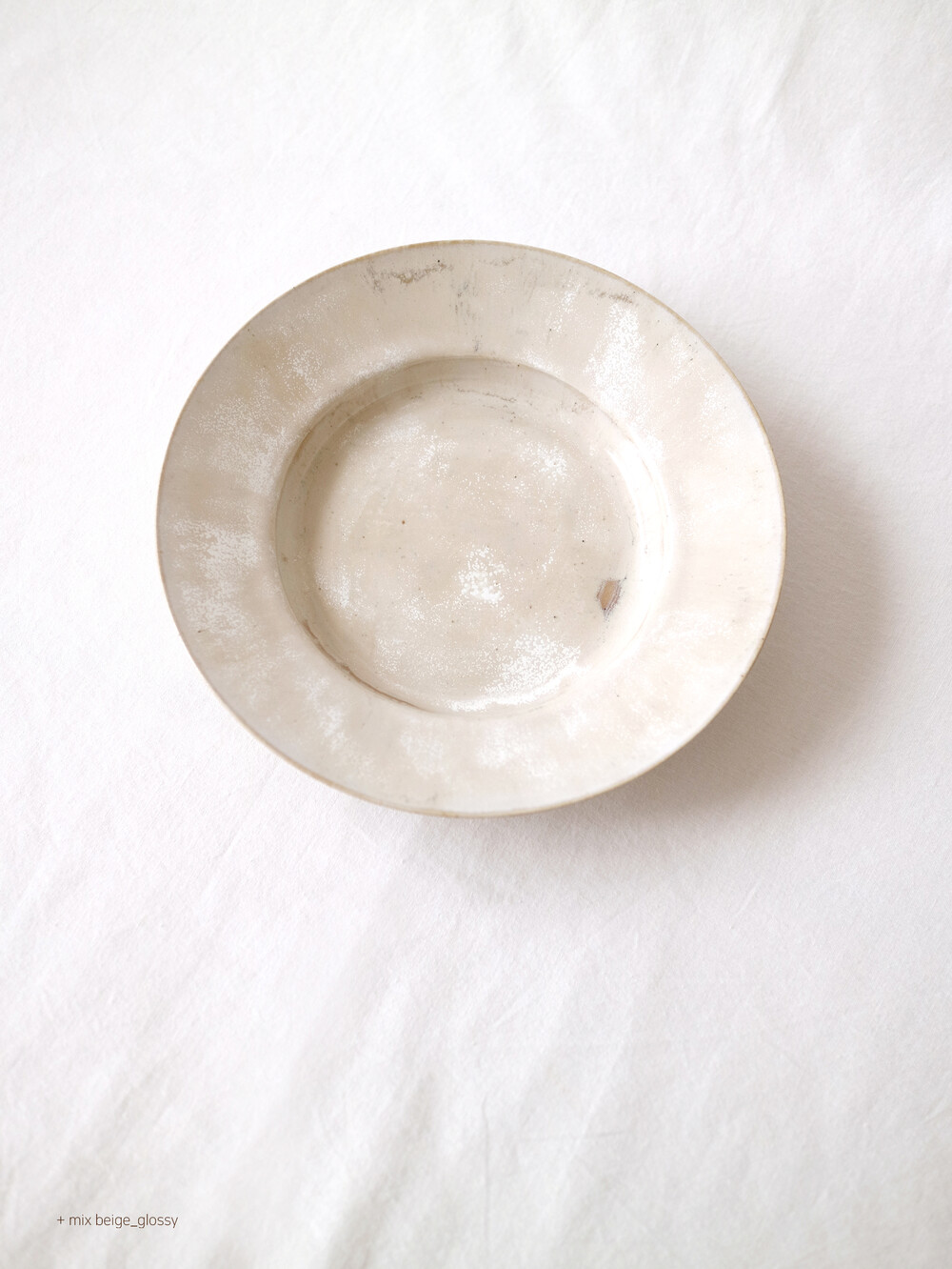 glossy 믹스 베이지 컬러는 화학적 반응을 통해 우연한 결과를 만들어 내는 이중시유로 작업하여 핸드메이드만의 특색을 느낄 수 있습니다.