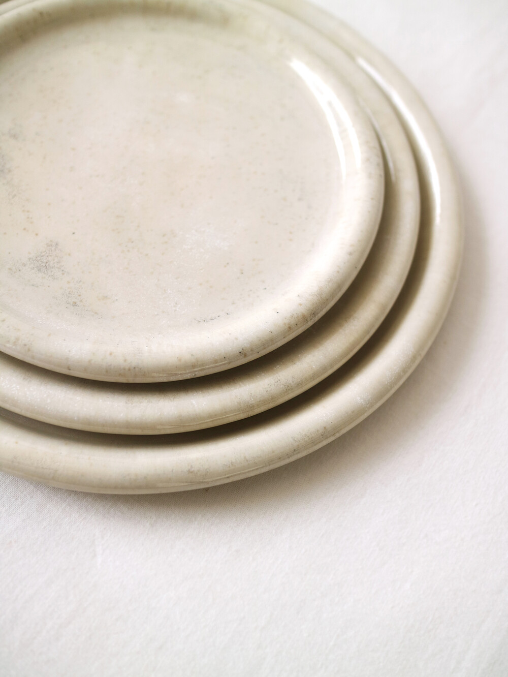 + 위, 아래 두 사진을 비교해보면 플레이트의 색상 분포가 다른것을 확인 할 수 있습니다. 믹스 베이지 컬러의 경우 화학적 반응을 통해 우연한 결과를 만들어 내는 이중시유로 색상이 균일하지 않습니다. 유약의 두께나 흐르는 정도에 따라 다르게 표현되기 때문에 똑같이 나오는 상품이 없습니다.