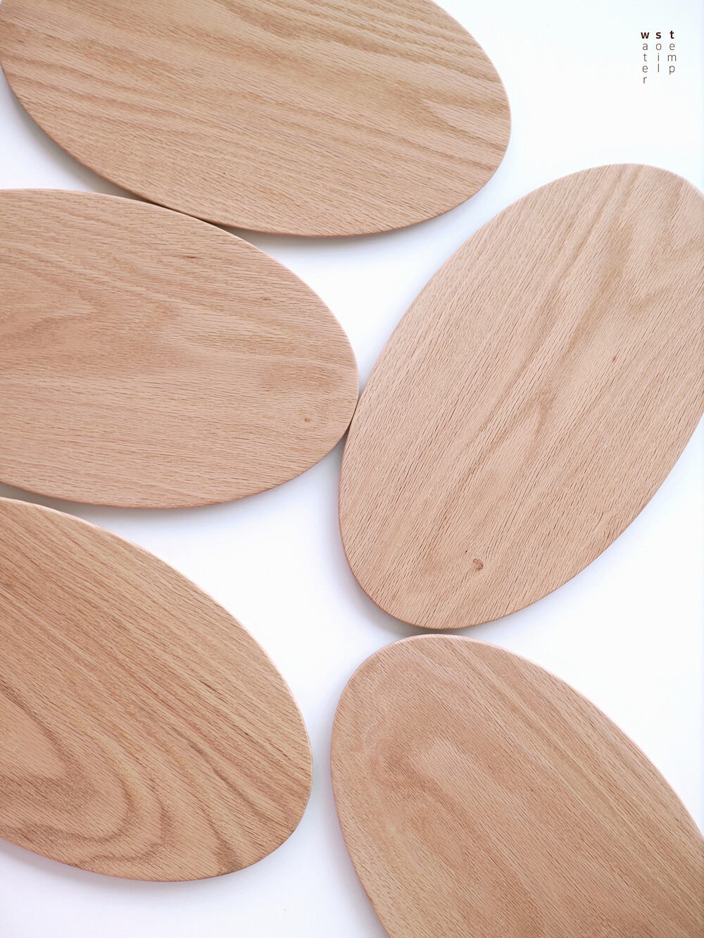워소템 테이블 매트의 시그니처 디자인인 타원 모양을 담아낸 첫 번째 우드 상품입니다.